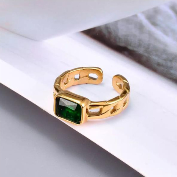 Tipo producto Joyería Tipo Joya Anillo Composición Acero Inoxidable Parilti SKU ps-ani114 Moda 18K chapado en Oro Medio Círculo Rectangular Circón Anillo de Acero Inoxidable Solicito presupuesto