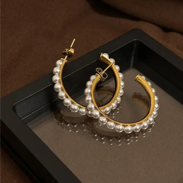 Tipo producto Joyería Tipo Joya Pendiente Composición Acero Inoxidable Parilti SKU ps-pend040 Pendientes de Acero Inoxidable con Circonitas de Perlas Artificiales chapadas en oro Solicito presupuesto
