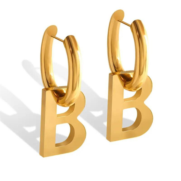 Tipo producto Joyería Tipo Joya Pendiente Composición Acero Titanio Parilti SKU ps-pend013 Pendientes de Gota exagerado Letra Acero Titanio chapado en oro Solicito presupuesto