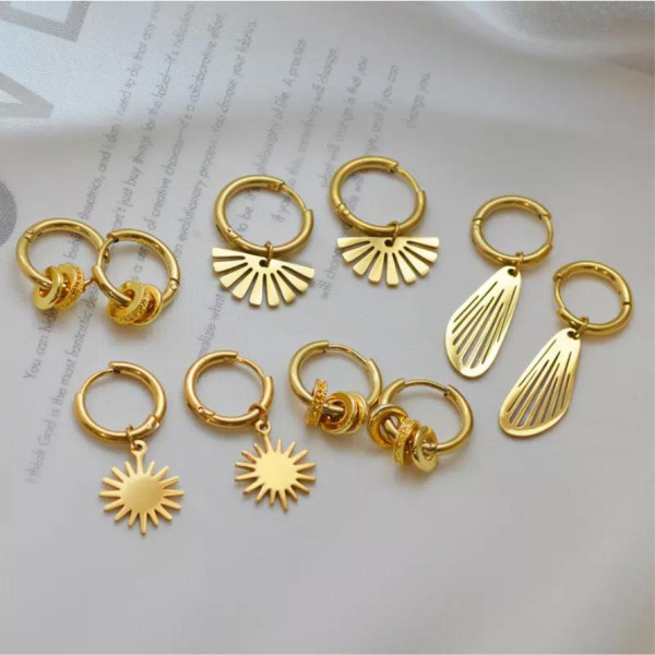 Tipo producto Joyería Tipo Joya Pendiente Composición Acero Inoxidable Parilti SKU ps-pend195 Pendientes diseño simple circular con colgantes en pedreria chapados en oro acero inoxidable Solicito presupuesto