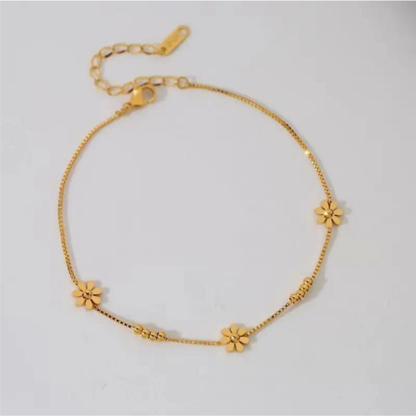 Tipo producto Joyería Tipo Joya Tobillera Composición Acero Inoxidable Parilti SKU ps-tobi020 Tobillera estilo Fantasia con diseño de Flores, chapada en Oro, acero inoxidable Solicito presupuesto