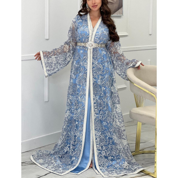 Tipo producto Ropa de Vestir Categoría Ropa de Vestir Vestidos Summer ONE SKU ps-mujarab006 Caftán musulmán de Dubái con cristal bordado y encaje hecho a mano de lujo en azul con cinturón S -M-L-XL-XXL Solicito presupuesto