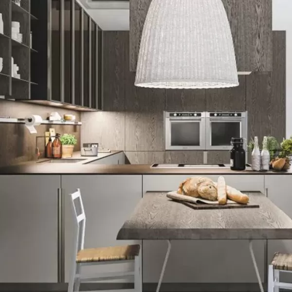 Este diseño de cocina se origina a partir de un cuidadoso análisis de las nuevas formas de vivir la cocina, el lugar privilegiado de las actividades domésticas diarias, el ambiente y la atmósfera parte integral de la vida cotidiana.